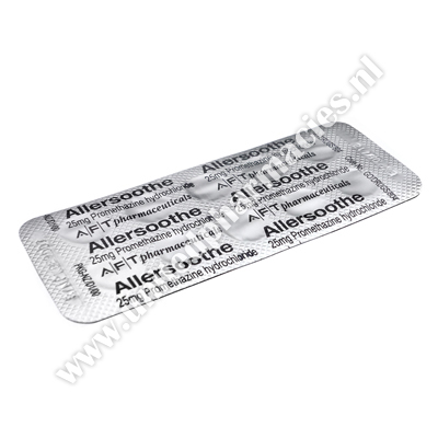 Allersoothe (Promethazine) is een anti histamine geneesmiddel dat voor twee primaire doeleinden wordt gebruikt. Veel patiënten gebruiken het om allergieën te behandelen en te voorkomen, zoals hooikoorts en urticaria. Het kan verlichting bieden tegen jeuk en verstopte neus, wat vaak voorkomt als gevolg van allergieën. Dit medicijn wordt ook veel gebruikt om misselijkheid en andere symptomen van reisziekte te voorkomen. Daarnaast kan het incidenteel worden gebruikt om slapeloosheid te behandelen of om misselijkheid te voorkomen die vóór een operatie optreedt. Het belangrijkste ingrediënt in dit geneesmiddel is een anti histaminicum en werkt door de werking van histamine, een natuurlijke stof die allergiesymptomen kan veroorzaken, te blokkeren.